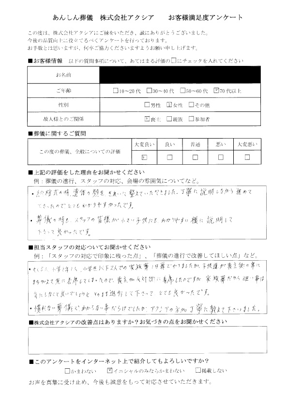 ・慣れない葬儀で、わからない事だらけでしたが、アクシアの方が丁寧に教えて下さいました。